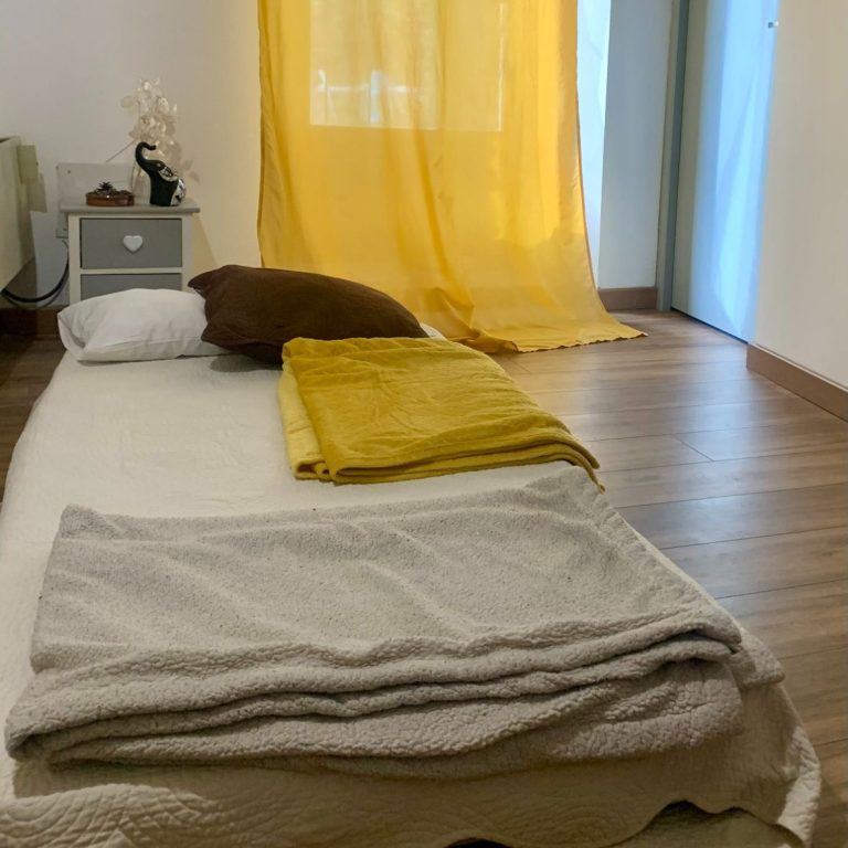 Le soin : la personne reste habillée, il ne s’agit pas d’un massage. Allongée ou assis selon la possibilité de chacun, il est conseillé d’enlever ses chaussures ainsi que tout élément qui pourrait gêner le soin (ceinture, montre, barrette…). Des couvertures et des coussins seront à disposition pour se sentir le plus confortable possible.